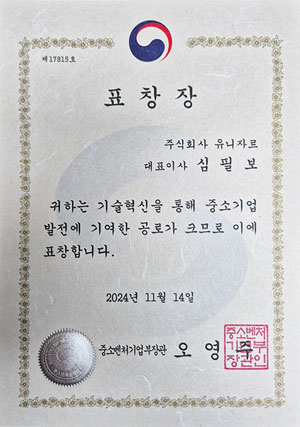 »óº¹µµ µû¶ó¿Ô´Ù. ½É ´ëÇ¥´Â ¿ÃÇØ 11¿ù 14ÀÏ ¡®2024 Áß¼Ò±â¾÷ ±â¼ú¡¤°æ¿µ Çõ½Å´ëÀü¡¯ ½Ã»ó½Ä¿¡¼ Áß¼Òº¥Ã³±â¾÷ºÎ Àå°ü ǥâÀ» ¹Þ¾Ò´Ù. ÀΰøÁö´É‧ź¼ÒÁ߸³‧±Û·Î¹ú‧¿¬±¸°³¹ß 4°³ ºÎ¹®¿¡¼ µÎ·ç ³ôÀº Á¡¼ö¸¦ ¾ò¾ú´Ù. À¯´ÏÀÚ¸£´Â ÇÃ¶ó½ºÆ½ »ç¿ëÀ» ÁÙ¿© ź¼Ò¹èÃâ·®À» °¨ÃàÇÑ´Ù. Ŭ¸°Á¦Á¶ ½Ã½ºÅÛÀ» ±¸ÃàÇØ ¿ÀÆó¼ö ¾øÀÌ Á¦Ç°À» »ý»êÇÑ´Ù.
